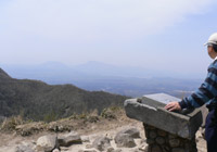 久住山頂上より見る 近くの山の噴煙 |