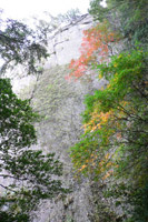 一枚岩を背景に 紅葉が綺麗です。 |